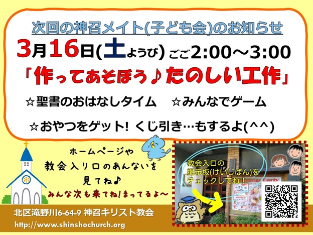 3月の神召メイト(子ども会)の案内です♪