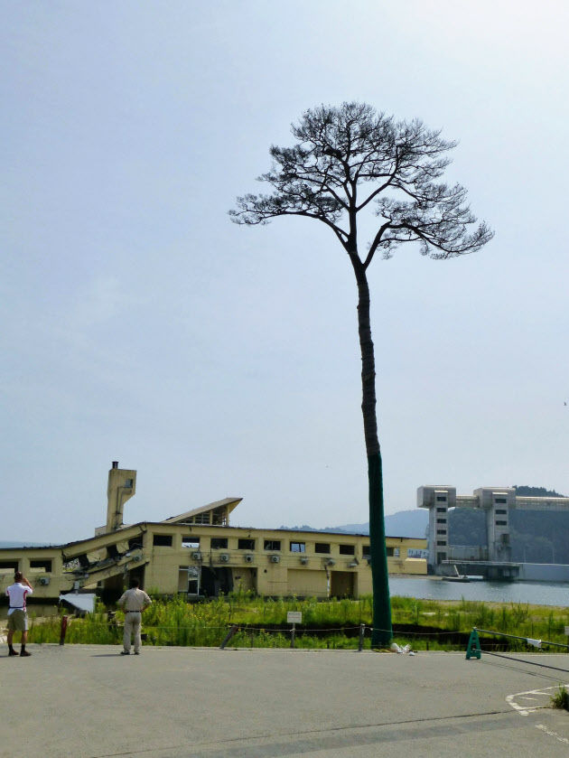 現地では『語り部』さんにバスに乗ってもらいあちらこちら案内していただきました。私自身今まで何か所か被災地は訪れてきましたが、この地の被害の大きさと3年半も経過しながらいまだに復旧に殆ど手が付けられていない状況に驚きを禁じ得ませんでした。町の中心部は地盤沈下が激しく、建築物を建てることが許されていませんが、ほとんどの瓦礫は撤去され、はるかかなたまで見通せるだだっ広い平坦な広がりを見せています。ただその中で被災の姿のまま残してある建物等が数か所あります。被災を忘れないために敢えてその姿をとどめておくのだという姿勢にも大いに頷けるところです。あの有名になった「奇跡の一本松」もその