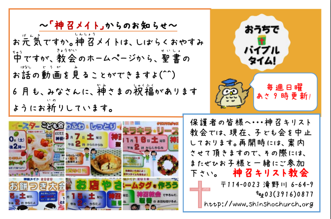※「神召メイト」は、毎月第一・第三の土曜日に開いている「子ども会」です。