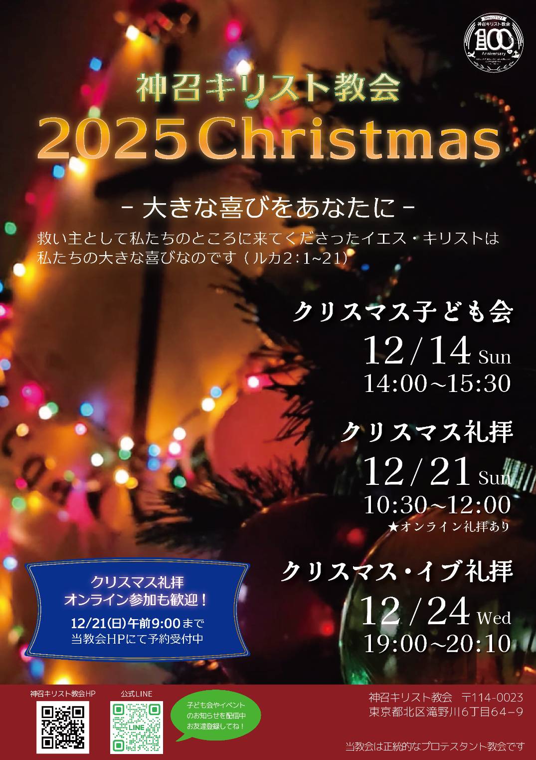 クリスマス礼拝・クリスマスイブ礼拝の案内