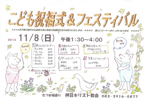 併せて、ご家族で楽しめる「子どもフェスティバル」も開かれます。ぜひこの機会にお子様と一緒に教会にお出かけ下されば幸いです。ご来会を心から歓迎し、以下にご案内申し上げます。