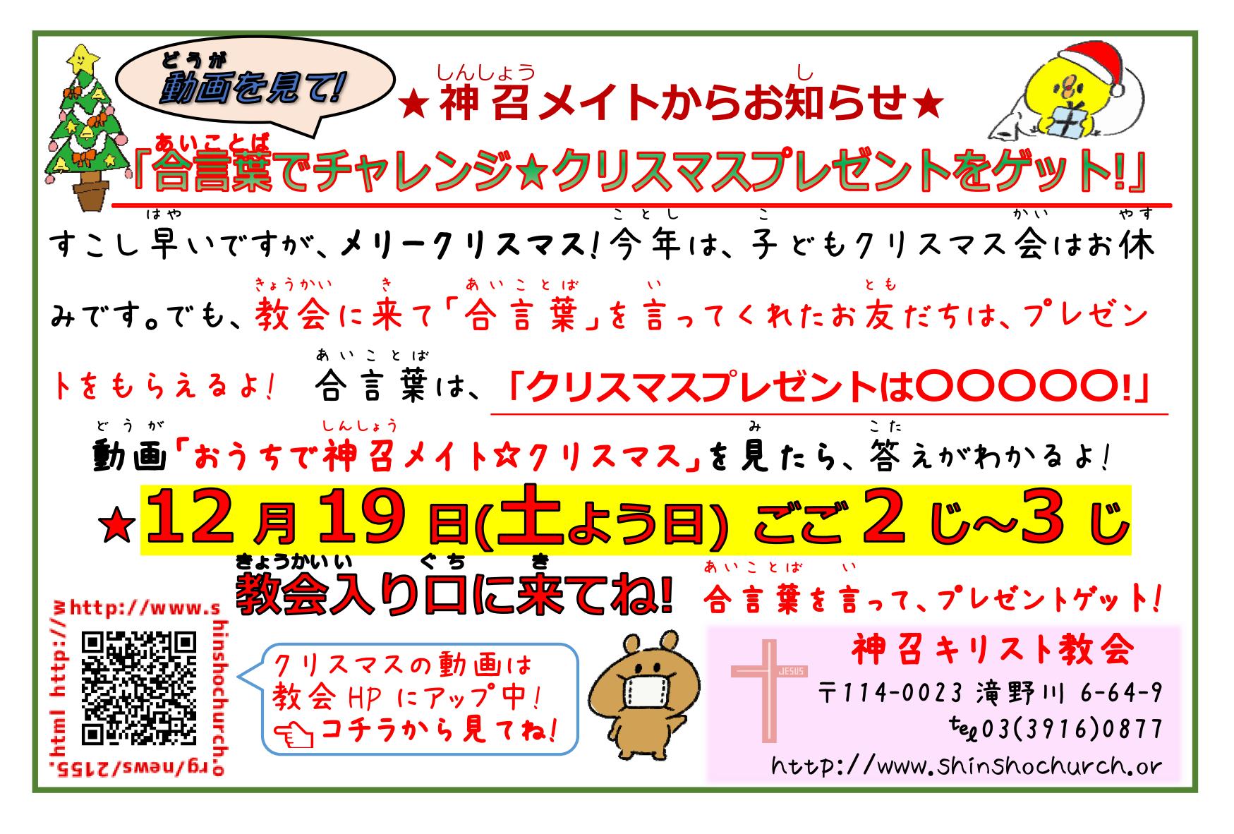 神召メイト(教会の子ども会)からのクリスマス案内です!
