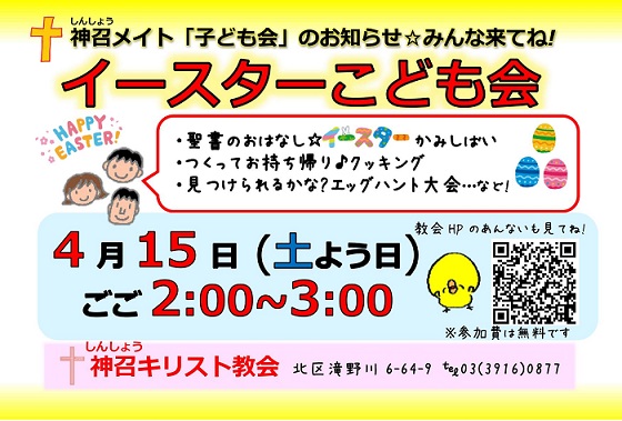 4/15(土) 午後2時~3時「神召メイト☆イースター子ども会」
